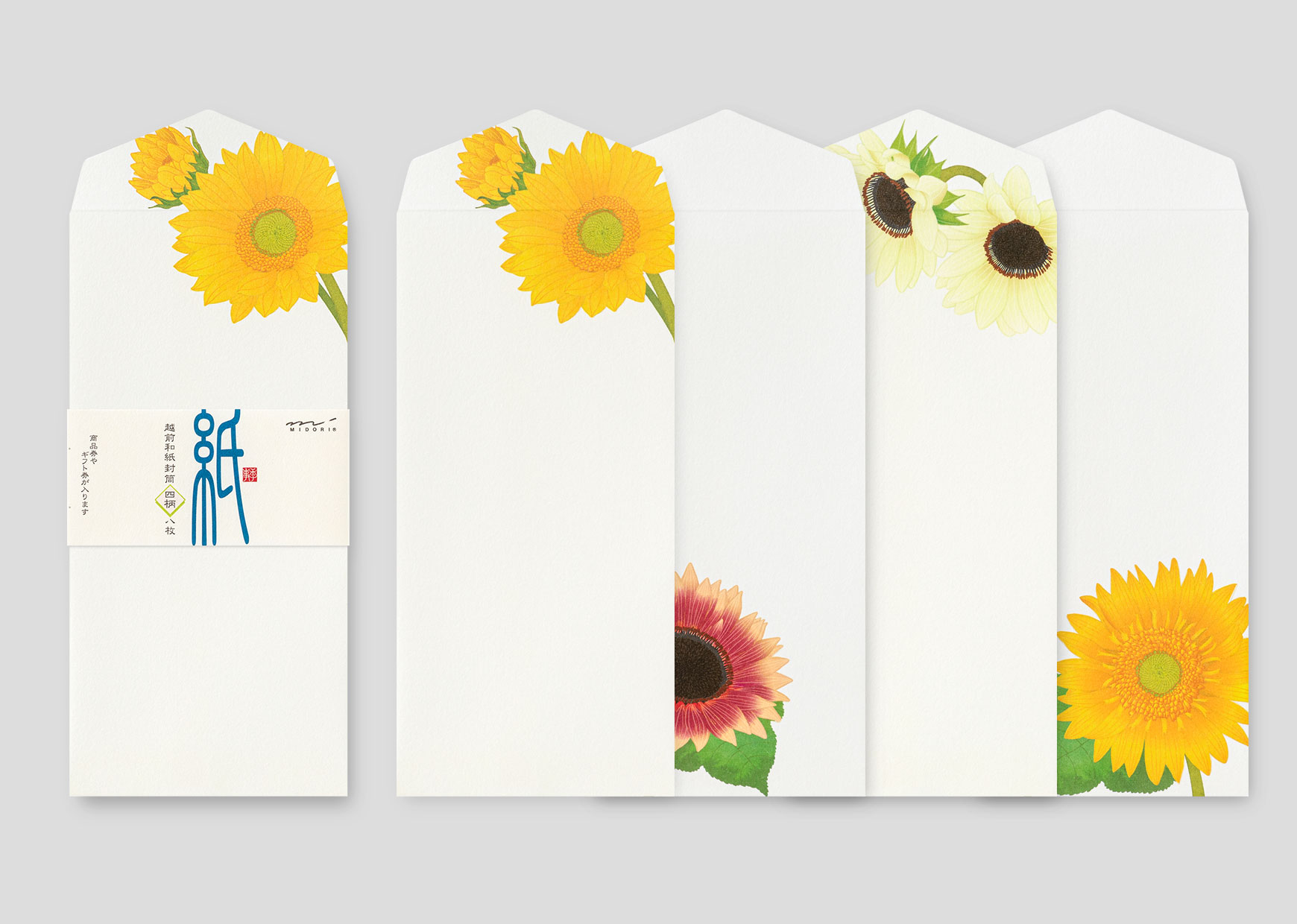 The Kami Series, named after the Japanese word for paper, features a collection of washi letter pads and envelopes, each designed with bold compositions that highlight seasonal flowers and the changing seasons. The charm of this series lies in how the design makes even a few words on the page look beautifully complete. Perfect for seasonal greetings, this series can also be used for everyday correspondence and thank-you notes.