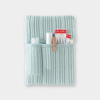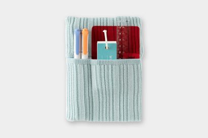 A storage pouch with pockets for assorted stationery and other favorite items.