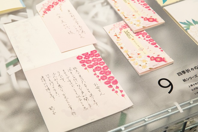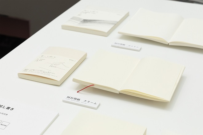 こだわりの自社オリジナル用紙の中から、「MD用紙」クリーム、「MD用紙」コットン、MN用紙、DW格子用紙、春秋用紙と、書き味が異なる5種類の紙をお試しいただけるコーナー。お気に入りの紙を選んで投票いただいた方には、5種類のオリジナル用紙を綴じた限定メモをプレゼントしました。
