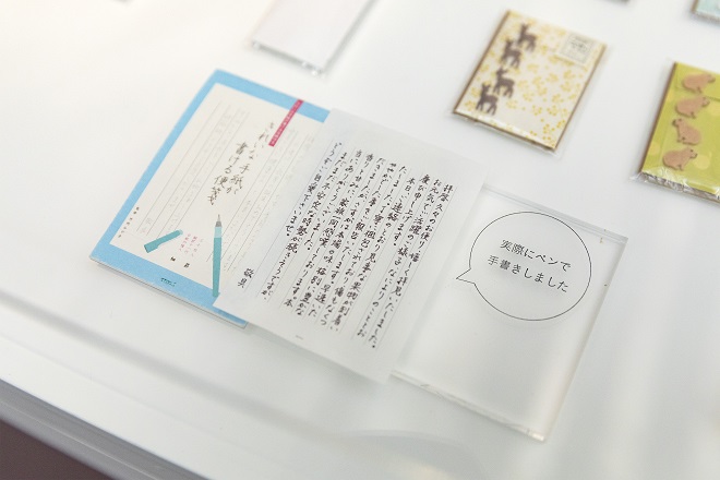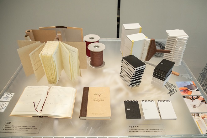 日記、祝儀袋、クリップなど、製品ができるまでの工程を分解して展示しました。普段見ることが出来ないつくりのこだわりを垣間見られるコーナーです。「こんな風に手をかけて作られているんですね」と驚きの声をたくさんいただきました。