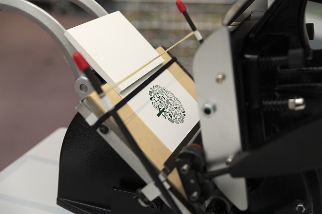 自分でレバーを動かし、ノートの表紙に印刷をします