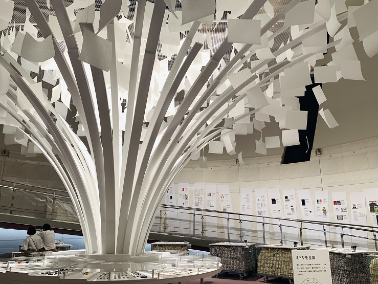 葉を表現したペーパーがゆらゆらと揺れて、木漏れ日が降り注いでいるような雰囲気に