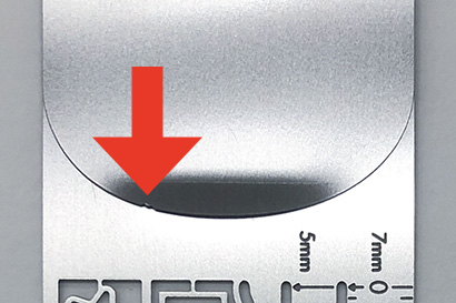 【ご指摘の内容】製造工程で生じる「つなぎ目」(赤矢印部分)のくぼみが疵(きず)と認識される場合がある。