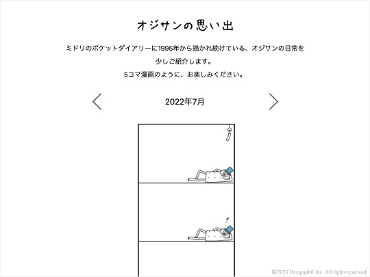『ポケットダイアリー』に1995年から描かれ続けている5コマ漫画風の「オジサン」の日常を、スクロールせずに見られるように変更