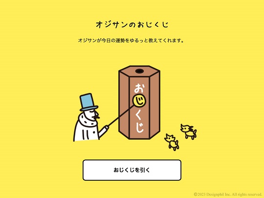 「オジサン」が今日の運勢を教えてくれるおみくじを、1日1回引くことができます