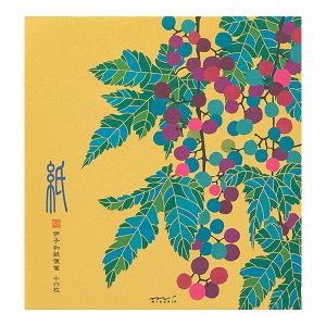 秋の日差しを思わせる金シルク印刷の色で、美しい野ブドウの実を際立たせています。