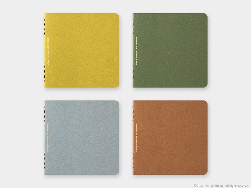 表紙が内側に折り込まれており、スタンプを押した後ページの間に挟むことで隣のページへのインク移りを防ぎ、きれいに保管することができます。また、未使用ページに挟んでおけば、しおりとしてもお使いいただけます。色味は、シックで深みのある黄、緑、青、茶の4色をご用意しました。