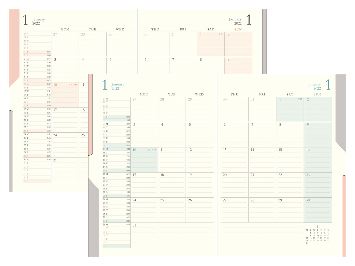 2022年版『ダブルスケジュール ダイアリー 進行』