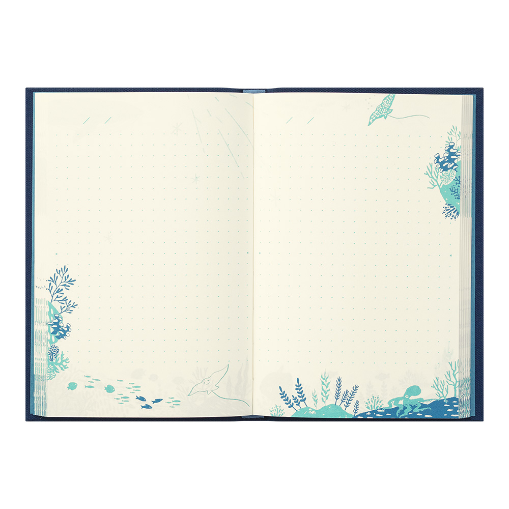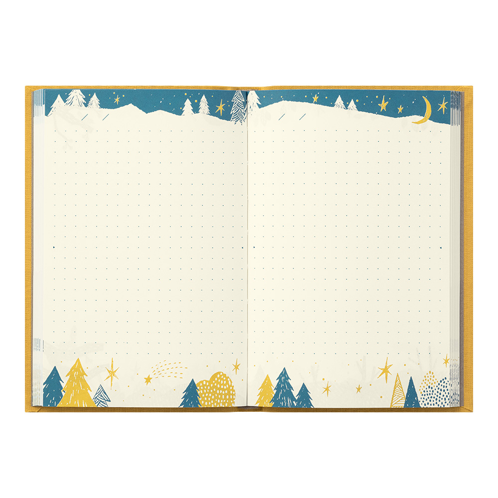 筆記面は、それぞれ見開きで4 柄の風景デザインを楽しむことができ、ページをめくる度にさまざまな景色に移り変わります。
