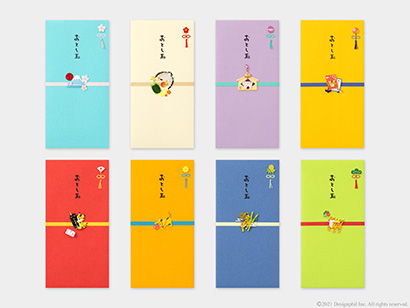 立体感のあるペーパークラフトのモチーフをあしらったぽち袋と金封です。色とりどりの封筒に、縁起のいいペーパークラフトのモチーフをあしらい、どなたにも使いやすいデザインに仕上げています。繊細なペーパークラフト部分は、ひとつずつ手作りで仕上げています。