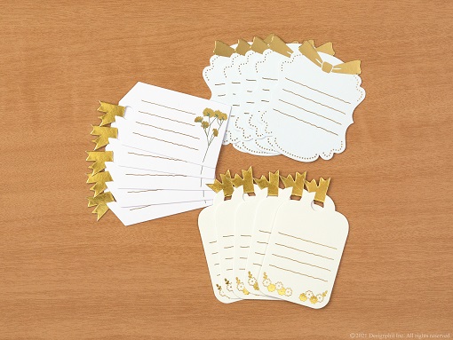 ギフトやアルバム、色紙などに使えるラベルシールです。罫線部分に金箔を施しており、贈り物が華やかに仕上がります。1枚ずつミシン目が入っているため、寄せ書きなどメッセージを集めるときに1人ずつ配ることができます。