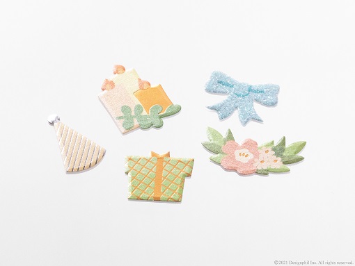 カードや色紙、ラッピングのデコレーションに使えるフレークタイプのシールです。スポンジシートが付いた立体感のある柔らかいシールに、アクセントとなる箔やラメの加工を施しました。好評発売中の『タイトルシール』や『ラベルシール』と組み合わせてさらに華やかにお使いいただけます。