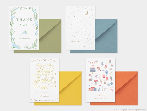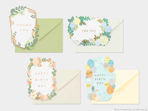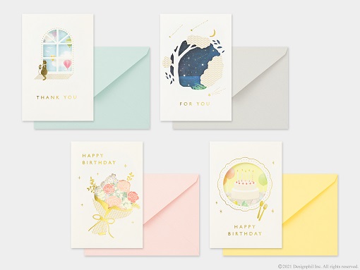 好評発売中の、大切な人への想いを届けるカードのラインアップに、『レーザーカットカード』『窓付きカード』『活版カード』『色箔カード』の4つのタイプが加わります。いずれも、誕生日や記念日のお祝いはもちろん、卒業や感謝を伝えるシーンで気持ちを伝えたいときにぴったりです。