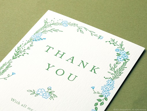 細かな絵柄を、美しい風合いとぬくもりを感じる活版印刷で仕上げた味わいのあるカードです。爽やかなブルーを基調とした感謝の気持ちを伝えるデザインや、お祝いの言葉をレタリング文字でグラフィカルに表現したデザインなど、贈る相手に合わせてお選びいただける全4柄をご用意しました。活版印刷ならではの凹凸やかすれなど、一枚一枚わずかに異なる風合いをお楽しみいただけます。