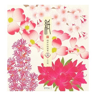 春風が吹くころ街路樹は次々に可憐な花をその身に溢れさせます。つぼみの膨らみに心躍る「桜」、木を丸ごと紅色に染めあげる「ときわまんさく」、見上げる青空に美しく映える「花水木」、紅色が匂いたつ「つつじ」の花。鮮烈な色に包まれる春の便りです。やさしい風合いの越前和紙「越前鳥の子」を使用しています。 -