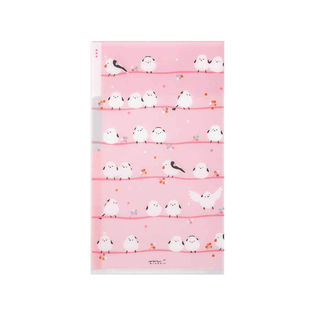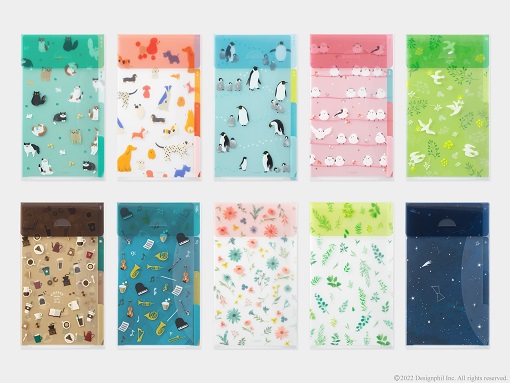 『3ポケットクリアホルダー』は、用途に合わせて書類をざっくり仕分けられる3ポケット仕様のクリアホルダーです。ポケットごとに絵柄が異なり、書類をいれる位置によってデザインの変化が楽しめます。既存のA4サイズ、A5サイズに加えて、今回新たにチケットやマスクなどが入るA5スリムサイズが新登場。ハガキや領収書など細かい紙ものがこぼれ落ちないフラップ付きで、持ち運びにもぴったりのアイテムです。