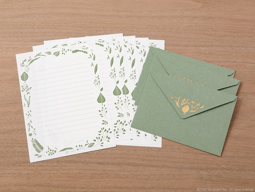 優しい草花のデザインで送る、箔押しがアクセントの『箔押封筒のレターセット』