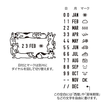 印面:ゴム製 日付+12アイコン インキパッド付(油性顔料系黒インキ:ABS+ウレタン製)