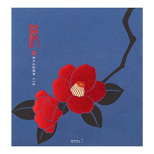 冬の寂しい景色の中でひときわ輝く鮮烈な赤の椿。庭の一枝を手折って(たおって)活ければ、ほの暗い部屋に赤い光がともるようです。特有のハケ目がある「伊予和紙」を使用しています。