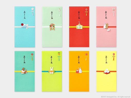 立体感のあるペーパークラフトのモチーフをあしらったぽち袋と金封です。色とりどりの封筒に、縁起のいいペーパークラフトのモチーフをあしらい、どなたにも使いやすいデザインに仕上げています。立体感のあるペーパークラフト部分は、ひとつずつ手作りで仕上げています。