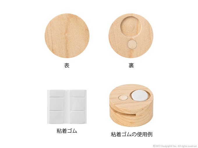 木製で丸い形の本体は、壁に馴染むようにできるだけ厚みを出さず、且つ強度を保てるように調整しました。カラーは、落ち着きのあるスモーキーな色合いの「グレー」「ピンク」「グリーン」「ナチュラル」の全4色のラインアップ。飾るものを選ばず組み合わせやすいシンプルなデザインです。