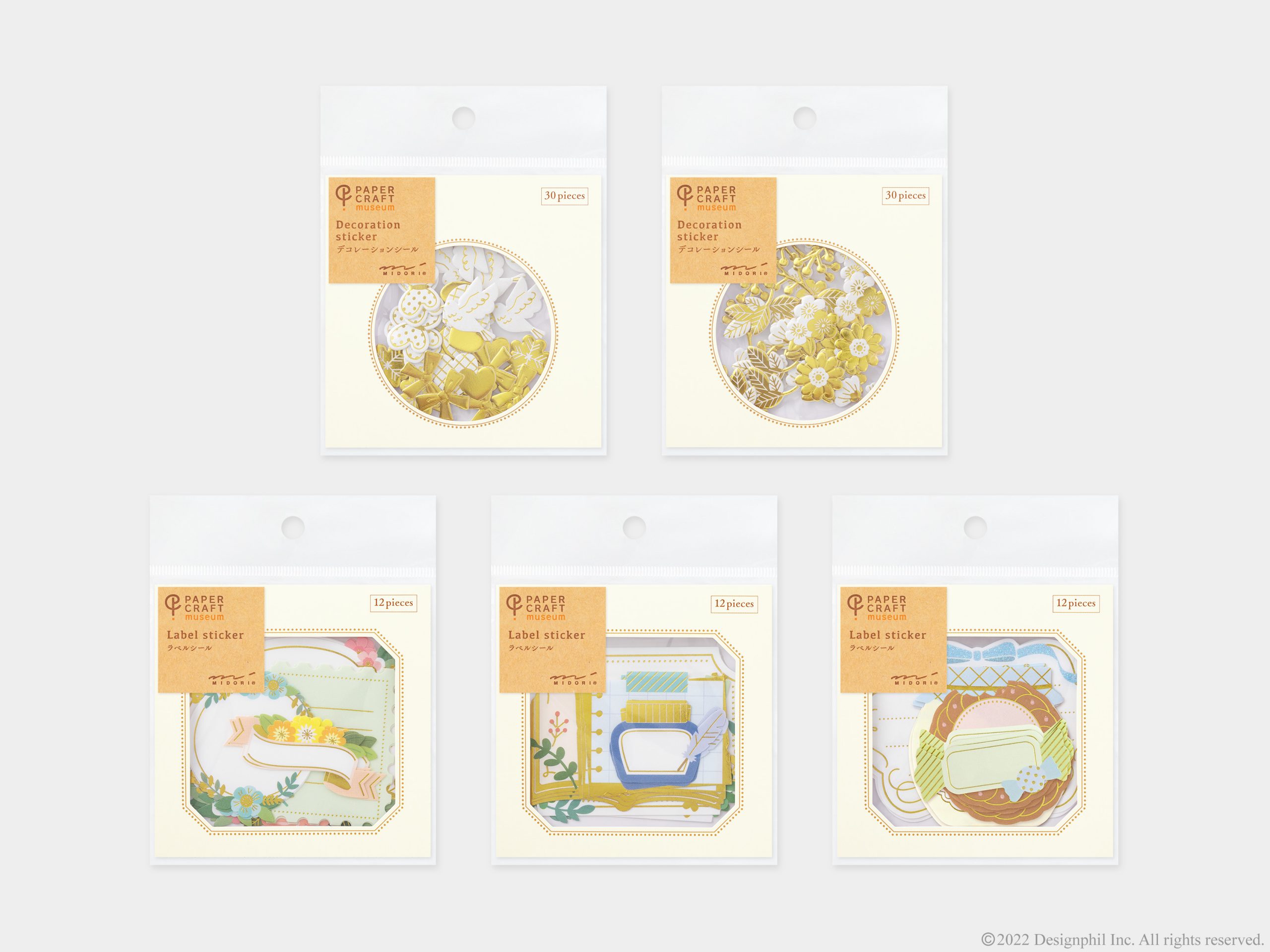 ペーパークラフトミュージアムに、カードやラッピングのデコレーションに使えるフレークタイプのシール『デコレーションシール』と、メッセージやタイトルが書き込める華やかなシール『ラベルシール』の新柄が登場します。