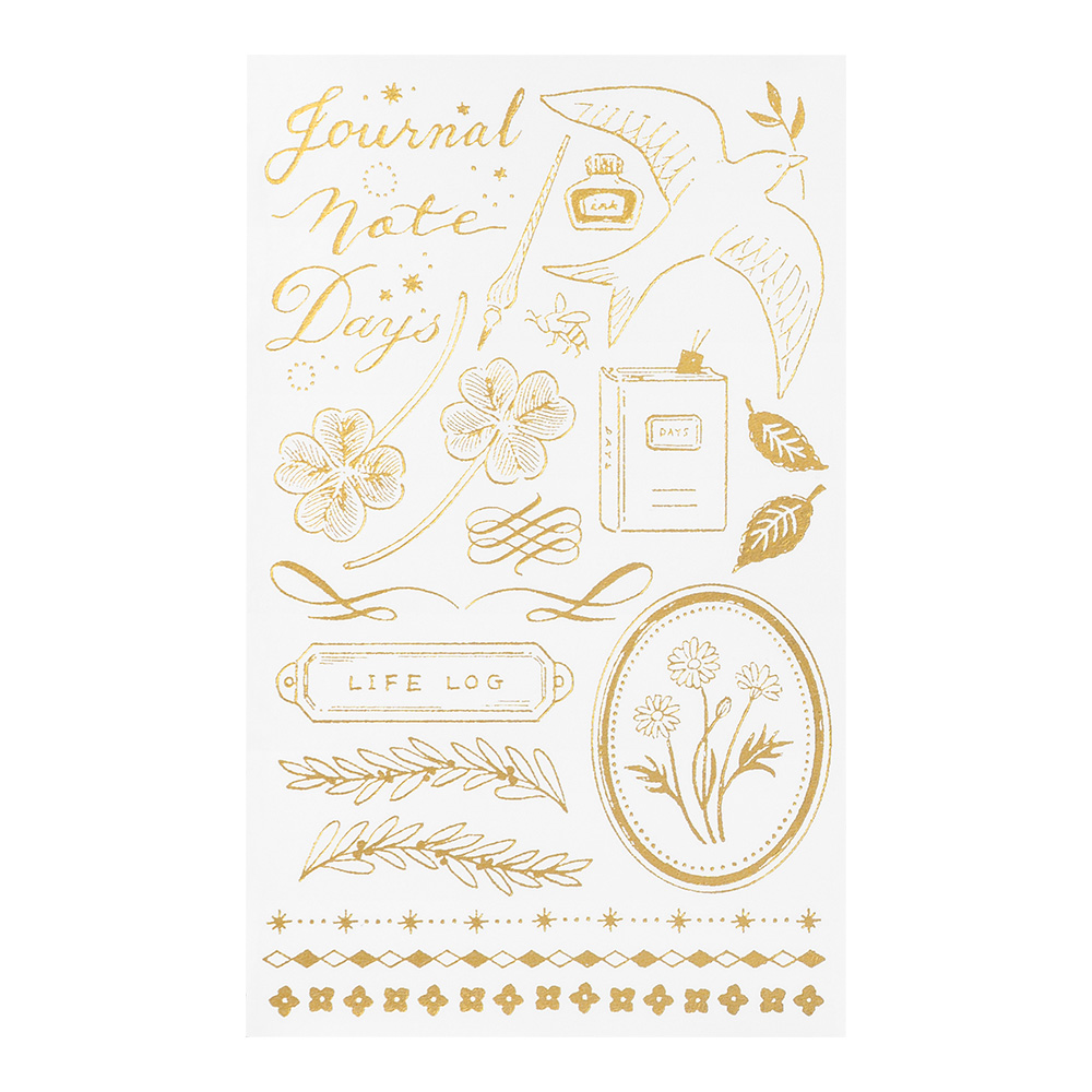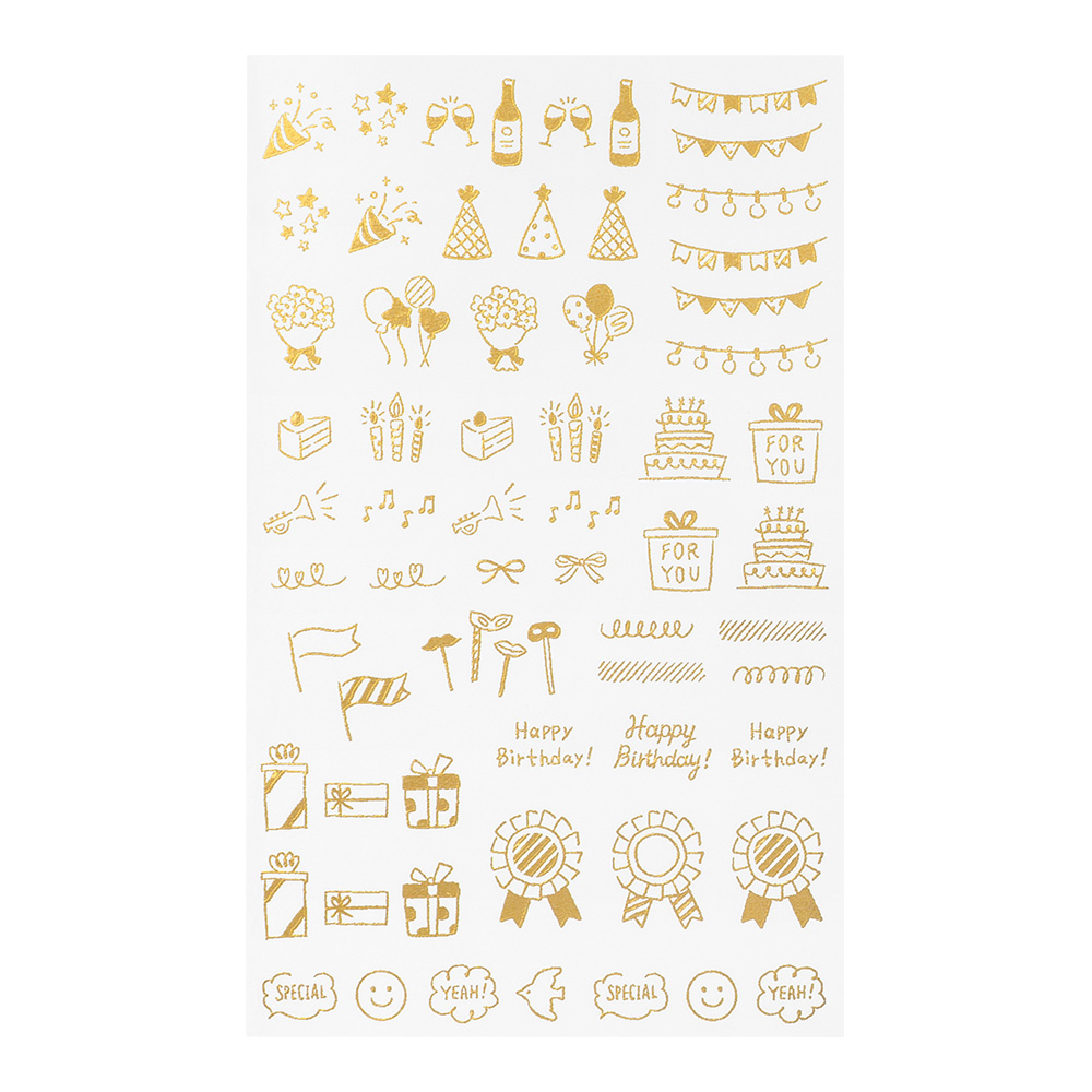 ノートや手帳の上からこするだけで、絵を描いたように仕上がる新感覚のシール『転写シール』に新しいラインアップが加わります。今回、さらにアレンジの幅が広がる、金箔タイプの『箔転写シール』が新登場。キラリと光る、特別感のあるデコレーションが完成します。