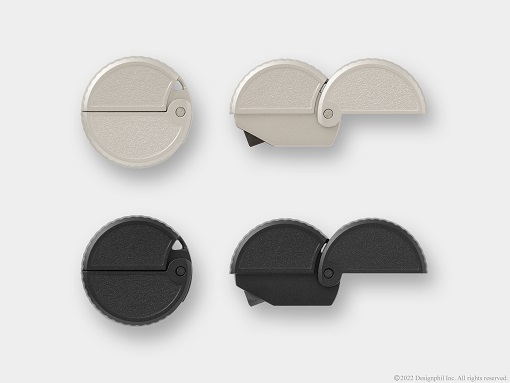 本体は刃を収納できる丸型のシンプルな形状です。使用時は、180度開くことで手にフィットし握りやすくなっています。また、強力なマグネットを内蔵しているため、金属製の机やドア、冷蔵庫などに付けて保管できる点も魅力です。