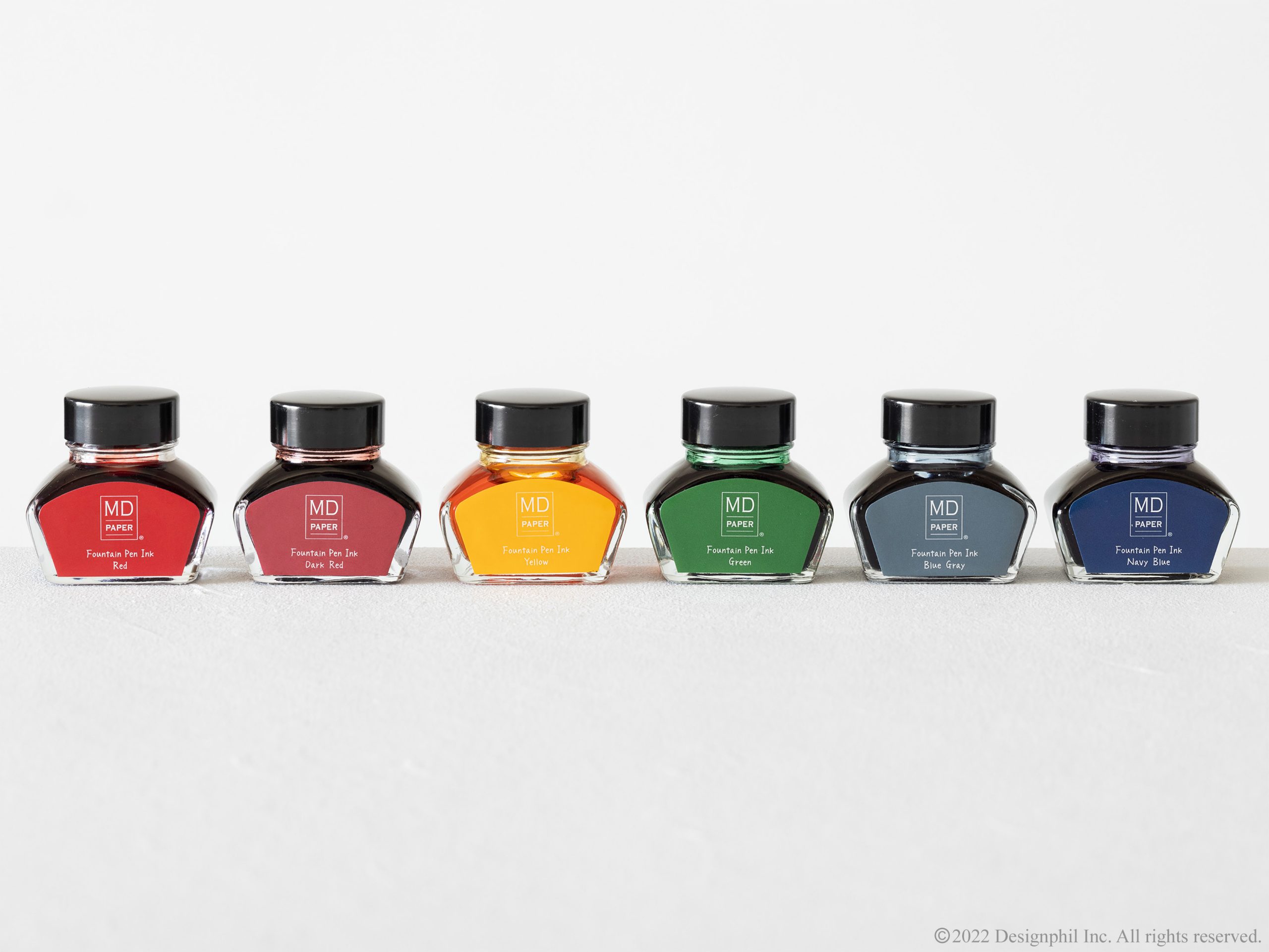 『MDノート』の罫線色やスピンなどからイメージしたカラーを調色したインクです。6色(赤、えんじ、黄、緑、ブルーグレー、紺)を15周年限定色としてラインアップしました。『MDつけペン』、『MD万年筆』と一緒にお使いいただけます。