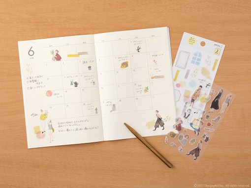 デザインは全8柄。さまざまなファッションのデザインがおしゃれなワンポイントになる「ファッション柄」や、外出をした日の思い出記録にぴったりの「おでかけ柄」、小花のモチーフを組み合わせることでお好みのフラワーアレンジメントが作れる「花柄」など、その日の出来事や気分に合わせてお選びいただけます。いずれも、落ち着いたトーンの色味を用い、手帳のページに馴染む手書き風のタッチが魅力です。
