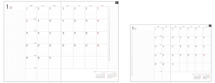 付せん紙が貼れる方眼罫のメモスペースを設けており、予定管理もスマートに行えます。