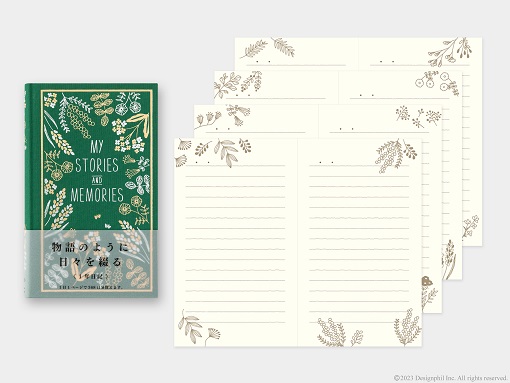 布貼りの表紙の全面に箔をあしらった洋書風デザインの日記『洋書日記』に新柄が仲間入りします。野に咲く愛らしい花々を、金と銀の2色の箔でデザインしました。表紙の落ち着いたグリーンによく映え、物語を綴るように毎日の出来事を丁寧に記したくなる一冊です。