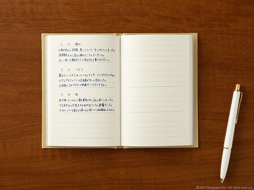 いずれの日記も、本文にはにじみや裏抜けがしにくく、書き味の良さを追求した「MD用紙」を使用しています。また、製本には開きやすくて丈夫な糸かがり綴じを採用し、長くお使いいただいても、ストレスなく書き進めることができます。