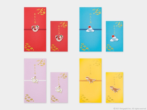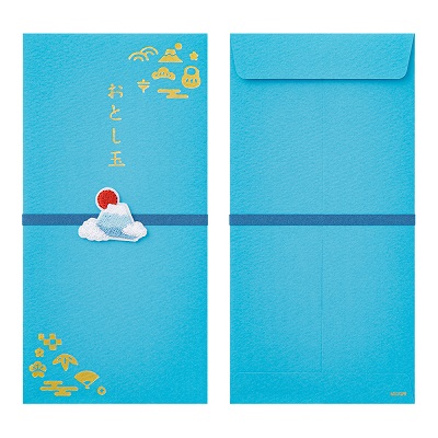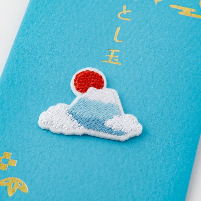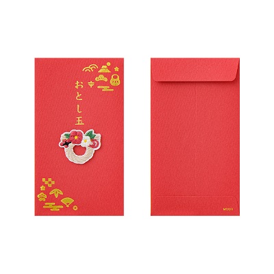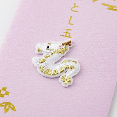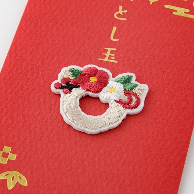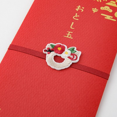 繊細な刺繍モチーフが特徴のおとし玉袋です。封筒全体にあしらった金の箔押しと刺繍モチーフの組合せにより、お正月にふさわしいシンプルながらも華やかなデザインに仕上げました。