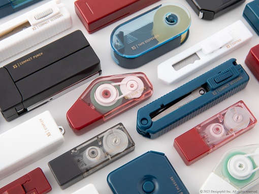 機能性と携帯性を追求したステーショナリーシリーズ「XS」の8アイテムを、黒、白、えんじ、紺の4色にカラーチェンジを行います。