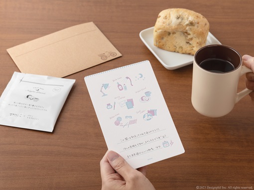 「パンとエスプレッソと」が焙煎した3種類の味のドリップバッグコーヒーと、「ミドリ」の活版印刷のメッセージカードと封筒がセットになった『ドリップバッグ・封筒付カード』が登場します。忙しそうな会社の同僚への差し入れ、クリスマスやバレンタインのちょっとしたプチギフトなど、身近な人とのコミュニケーションにぴったりです。手渡しはもちろん、切手を貼って郵送することもできます。(※郵送の際は定形外です)