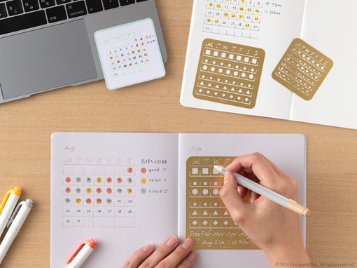 予定管理や体調管理のほか、趣味や運動などの習慣作りに便利なハビットトラッカーのフォーマットにもおすすめです。また、テンプレートにデザインしているさまざまな図形は、To Doリストやお買い物リストのチェックボックスとしても活用いただけます。さらに、決まった長さで線を引きたいときに便利な定規機能も付いています。「自分だけのカレンダーで、もっと気軽に日々の記録を楽しみたい」という方にぴったりの製品です。