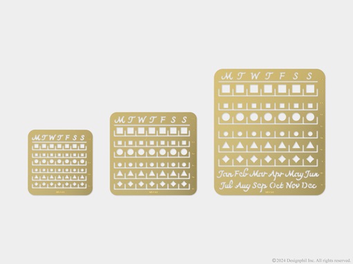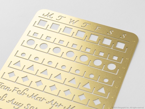 手帳やノートに月間カレンダーが書ける真鍮製のテンプレートです。お気に入りのペン(※)でなぞるだけで、お好きなページにかんたんきれいにカレンダーのフォーマットを作ることができます。(※ペン先が0.5mm以下の筆記具)