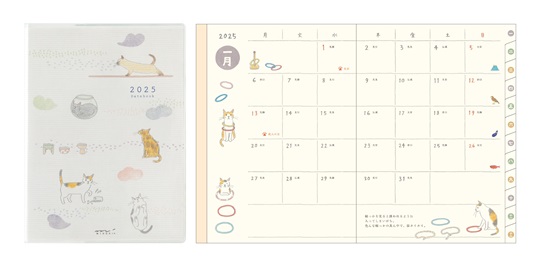 イラストレーター小泉さよさんが柔らかなタッチで描く猫たちのイラストとコラムが魅力のダイアリー。2025年版のテーマは「ネコの不思議」。ゆるっとかわいいネコならではの不思議な行動あるあるを詰め込みました。巻末には、うちのネコを撮ってみよう!&ネコ好きさんなら知っているネコ用語集ネココラム付きです。