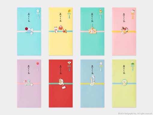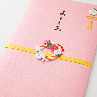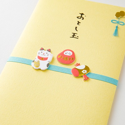 お正月にふさわしい、立体感のあるペーパークラフトのモチーフをあしらったぽち袋と金封です。色とりどりの封筒にお正月飾りや干支などのモチーフを合わせ、上質感あるデザインにしました。立体感のあるペーパークラフト部分は、ひとつずつ手作りで仕上げています。