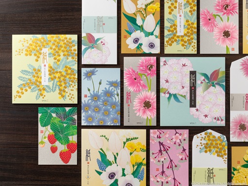 「紙シリーズ」は、四季折々の花々と季節のうつろいを大胆な構図でデザインした、和紙の便箋と封筒のシリーズです。少ない文字数でも紙面が美しく完成するデザインが魅力です。今回、あざやかに色躍る春の柄が新登場。便箋、封筒、一筆箋に加え、好評の春柄のポストカードを揃えました。季節のご挨拶にはもちろん、普段のお手紙やお礼状などにもお使いいただけます。