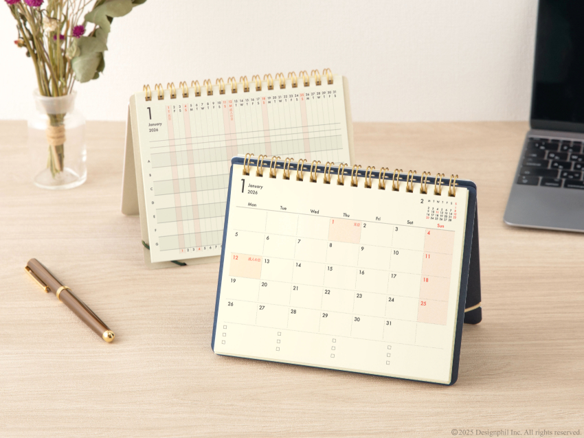 2026年版は、繰り返しめくるカレンダー部分を厚くて丈夫な「MD用紙」厚口に変更し、手帳としてもカレンダーとしてもさらに使い勝手が良くなりました。