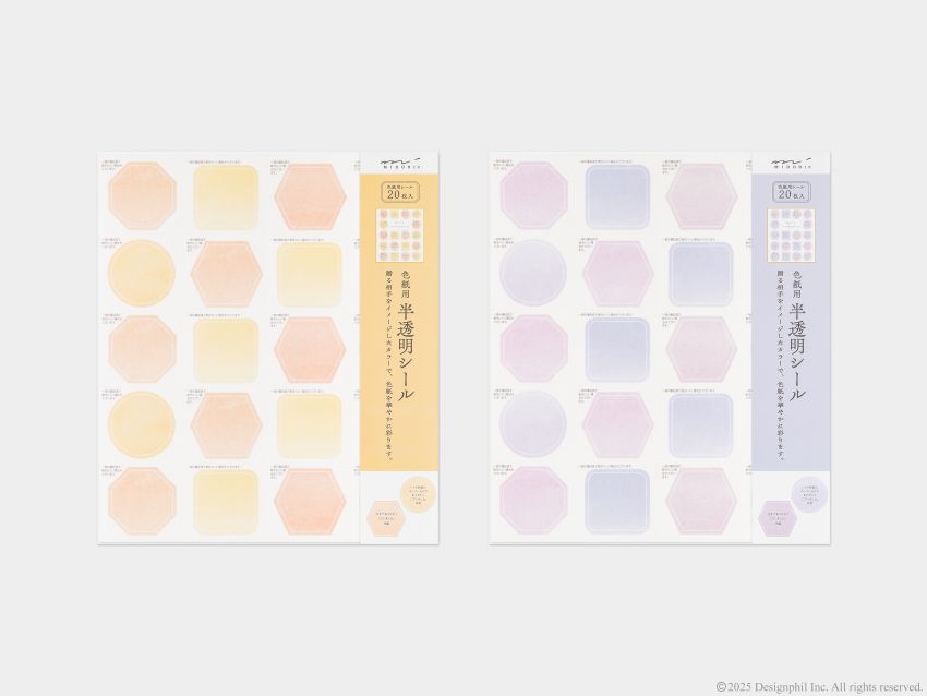 今回は、ご好評いただいている『色紙用 半透明シール』に「オレンジ」と「紫」が新たなラインアップとして登場します。