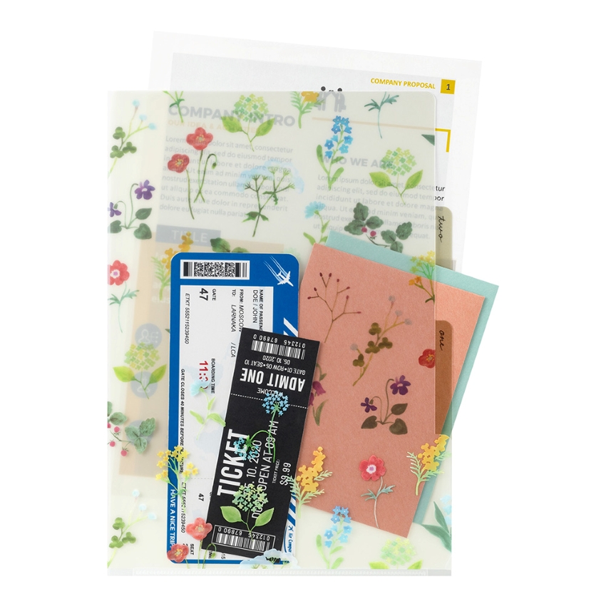 『3ポケットクリアホルダー』は、用途に合わせて書類をざっくりと仕分けられる3ポケット仕様のクリアホルダーです。ポケットごとに絵柄が異なり、書類を入れる位置によってデザインの変化が楽しめます。また、各ポケットにインデックスがついているので、用途ごとに分類したり、書類を探したりする際にも目印になります。今回、A4サイズに新たに5柄が登場します。