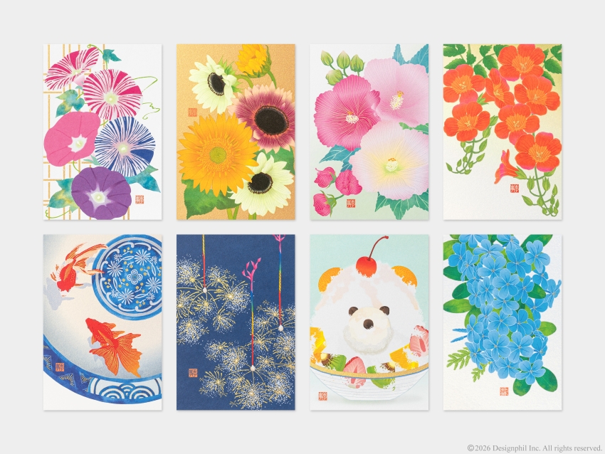季節のごあいさつにはもちろん、普段のお手紙やお礼状などにもお使いいただけます。ぜひ「紙シリーズ」とともに、キラキラと輝くあざやかな彩りの盛夏の季節をお楽しみください。